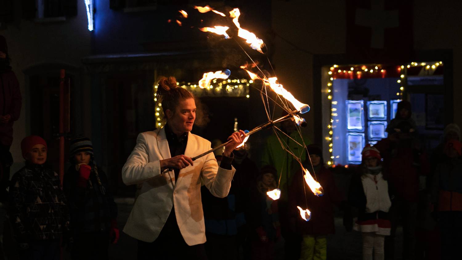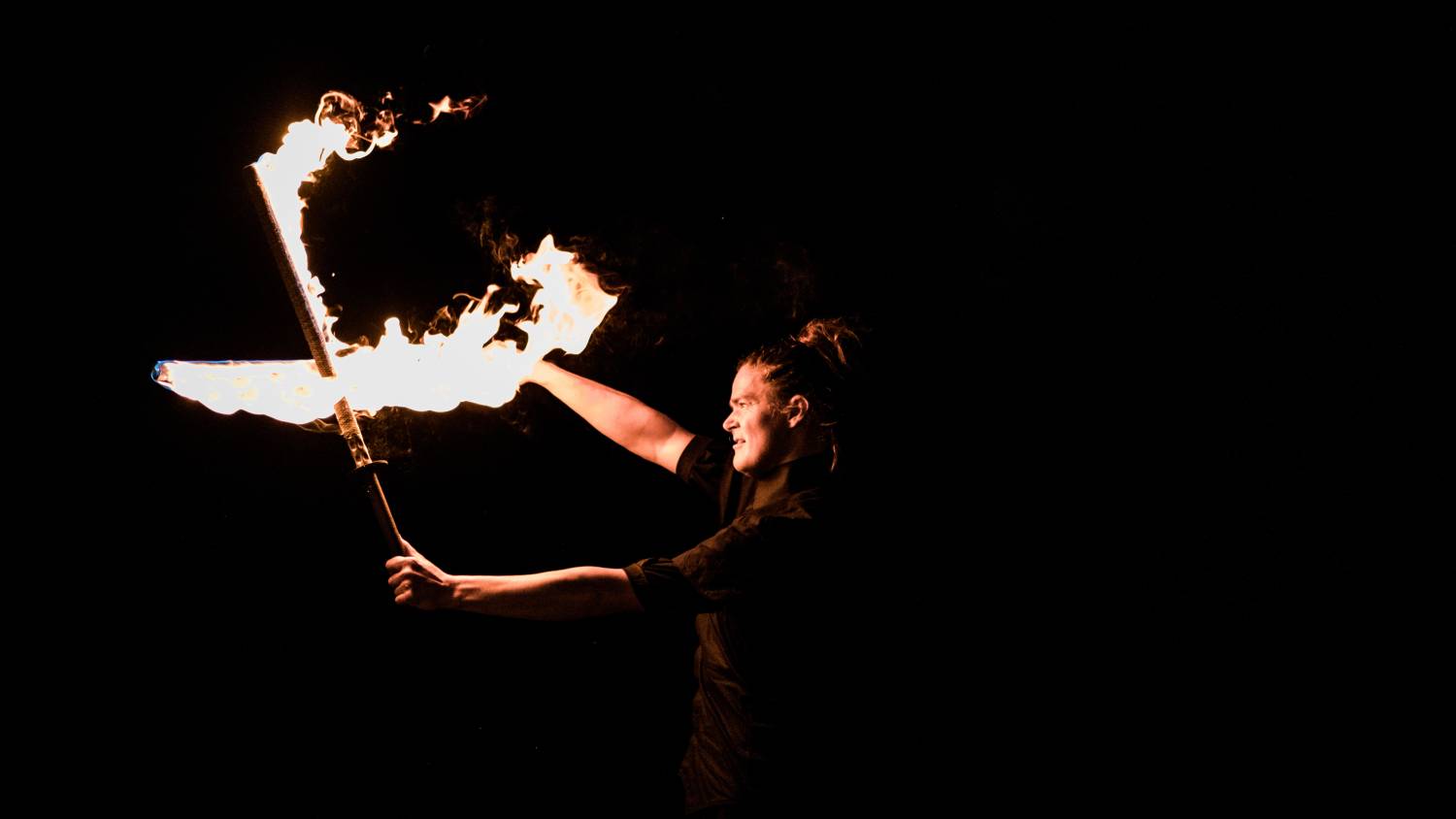 La corporalité de l’artiste, fusionnée aux flammes, métamorphose ce jonglage en véritable performance. Les effets pyrotechniques sont aussi originaux que surprenants. Vous y découvrez, entre autres, le parapluie enflammé, les sabres flamboyants ou encore le diabolo de feu.